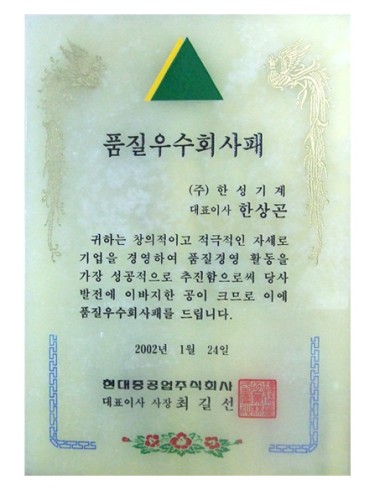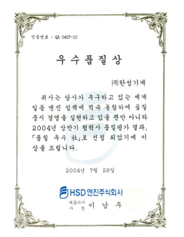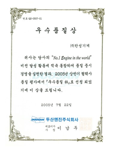 We introduce certifications that HANSUNG CO., LTD. obtained and the particulars of diverse awards.